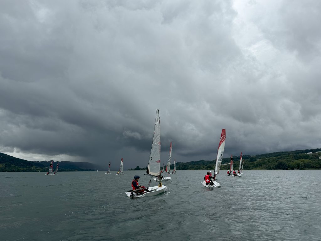 Das Wetter am ersten Tag war leider sehr verregnet. Allerdings hatten wir viel Wind, was sehr gut war. Doch Welle und Strömung im Zusammenspiel waren anspruchsvoll. Trotz starkem Regen hielten fast alle Segler durch und wir konnten am Ende fünf Wettfahrten segeln, was wir sehr schön fanden.